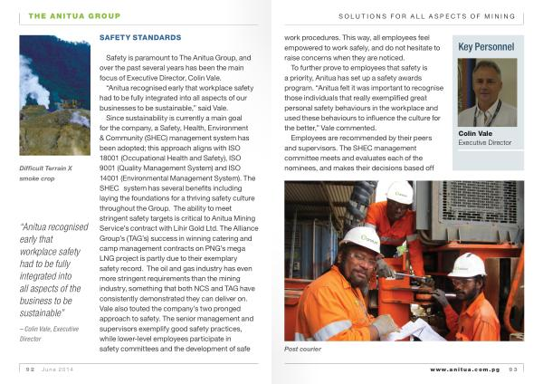 To further prove to employees that safety is a priority , Anitua has set up a safety awards program . “ Anitua felt it was important to recognise those individuals that really exemplified great personal safety behaviours in the workplace and used these behaviours to influence the culture for the better ,” Vale commented .
