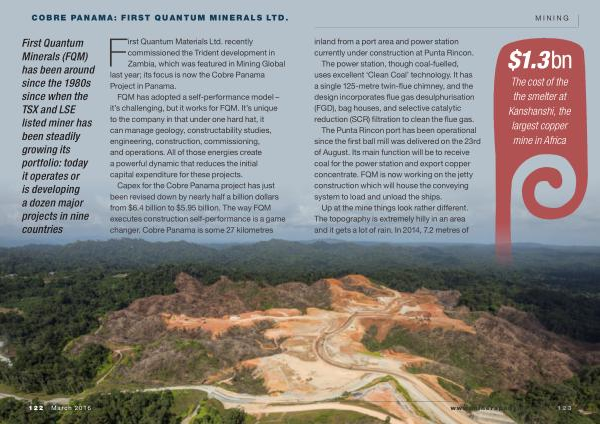 First Quantum Materials Ltd . recently commissioned the Trident development in Zambia , which was featured in Mining Global last year ; its focus is now the Cobre Panama Project in Panama .