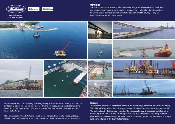 Intercoastal Marine , Inc . is the leading marine engineering and construction in Central America and the Caribbean . Established in Panama since the yar 1995 and carrying out a wide variety of engineering design works , new constructions , repair works , modernization and maintenance of structures and marine installations .