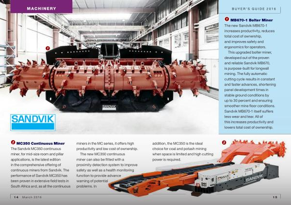 This upgraded bolter miner , developed out of the proven and reliable Sandvik MB670 , is purpose-built for longwall mining . The fully automatic cutting cycle results in constant and faster advances , shortening panel development times in stable ground conditions by up to 30 percent and ensuring smoother mine floor conditions . Sandvik MB670-1 itself suffers less wear and tear . All of this increases productivity and lowers total cost of ownership . addition , the MC350 is the ideal choice for coal and potash mining when space is limited and high cutting power is required .