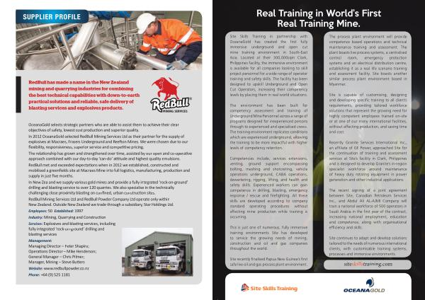 Site Skills Training in partnership with OceanaGold has created the first fully immersive underground and open cut mine training environment in South-East Asia . Located at their 300,000sqm Clark , Philippines facility , the immersive environment is available for all companies looking to skill project personnel for a wide range of operator training and safety skills . The facility has been designed to upskill Underground and Open Cut Operators , increasing their competency levels by placing them in real world situations .