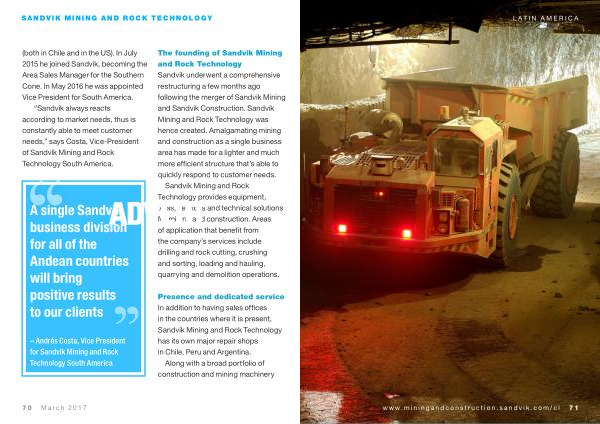 – Andrés Costa , Vice President for Sandvik Mining and Rock Technology South America