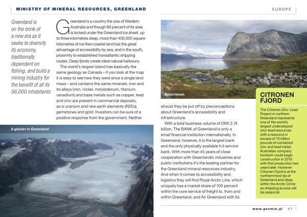 With a total business volume of DKK 2.74 billion , The BANK of Greenland is only a small financial institution internationally . In Greenland , however , it is the largest bank and the only physically available full service bank . With more than 45 years of close cooperation with Greenlandic industries and public institutions it ’ s the leading partner for the Greenland mineral resources industry . And when it comes to accessibility and logistics they will find Royal Arctic Line , which uniquely has a market share of 100 percent within the core service of freight to , from and within Greenland , and Air Greenland with its