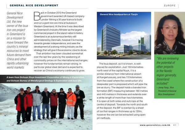 General Nice Development Ltd , the new owner of the Isua iron ore project in Greenland is on a mission to move forward the country ’ s mineral resources to meet future demand from China and other rapidly urbanising world markets