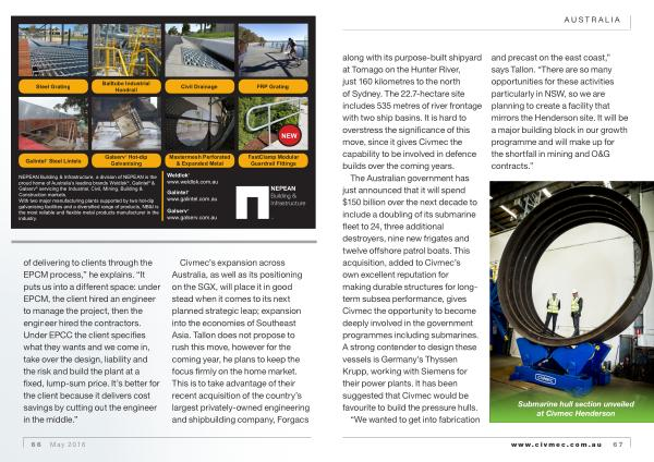 Civmec ’ s expansion across Australia , as well as its positioning on the SGX , will place it in good stead when it comes to its next planned strategic leap ; expansion into the economies of Southeast Asia . Tallon does not propose to rush this move , however for the coming year , he plans to keep the focus firmly on the home market . This is to take advantage of their recent acquisition of the country ’ s largest privately-owned engineering and shipbuilding company , Forgacs