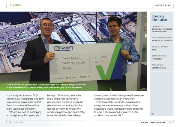 Environmentally , we aim to use renewable energy sources wherever possible , utilise sustainable waste management and endeavor to leave a site in as good or an even better condition than we found it .” www . civmec . com . au 73