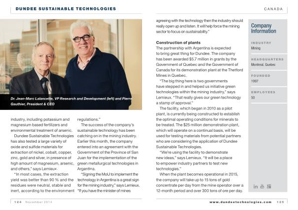 The success of the company ’ s sustainable technology has been catching on in the mining industry . Earlier this month , the company entered into an agreement with the Government of the Province of San Juan for the implementation of the green metallurgical technologies in Argentina .