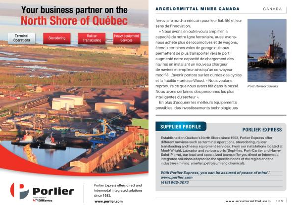 With Porlier Express , you can be assured of peace of mind ! www . porlier . com ( 418 ) 962-3073 www . arcelormittal . com 185