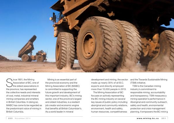The Mining Association of BC focuses on actively representing the BC mining industry on several key issues of public policy including aboriginal and community relations , environment , health and safety , human resources , competitiveness and the Towards Sustainable Mining ( tsm ) initiative . tsm is the Canadian mining industry ’ s commitment to responsible mining , accountability and transparency . tsm measures a mining operation ’ s performance in Aboriginal and community outreach , safety and health , environmental protection and crisis management planning . It empowers the BC mining