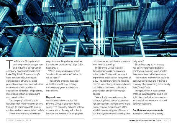 The Brahma Group is one of the safest industrial contractors in the United States with a current experience modification rate ( emr ) of 0.32 . The company ’ s motto ‘ beyond zero ” is more than just a catchphrase , but rather a mission to cultivate an organization of safety conscious people .