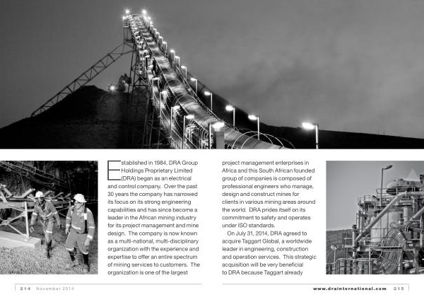 On July 31 , 2014 , DRA agreed to acquire Taggart Global , a worldwide leader in engineering , construction and operation services . This strategic acquisition will be very beneficial to DRA because Taggart already www . drainternational . com 215