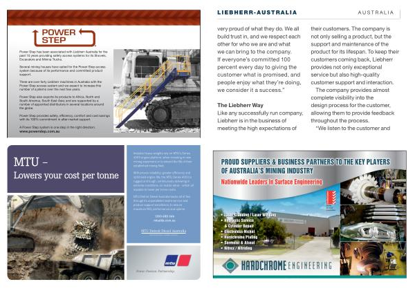 Liebherr-Australia australia very proud of what they do . We all build trust in , and we respect each other for who we are and what we can bring to the company . If everyone ’ s committed 100 percent every day to giving the customer what is promised , and people enjoy what they ’ re doing , we consider it a success .”