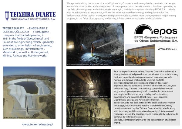imprint of a true Engineering Company , with recognized expertise in the design , and management of major projects and developments , it has been operating in and mining works since 1981 , mainly through its subsidiary EPOS , S . A . which , xperience , still has the most advanced technology and equipment for the e of works , remaining continuously active for more than 30 years in major mining prospecting and survey , infrastructure construction and exploration .
