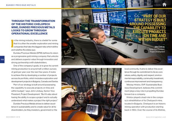 THROUGH THE TRANSFORMATION OF THE HISTORIC CHELOPECH MINE , DUNDEE PRECIOUS METALS LOOKS TO GROW THROUGH OPERATIONAL EXCELLENCE