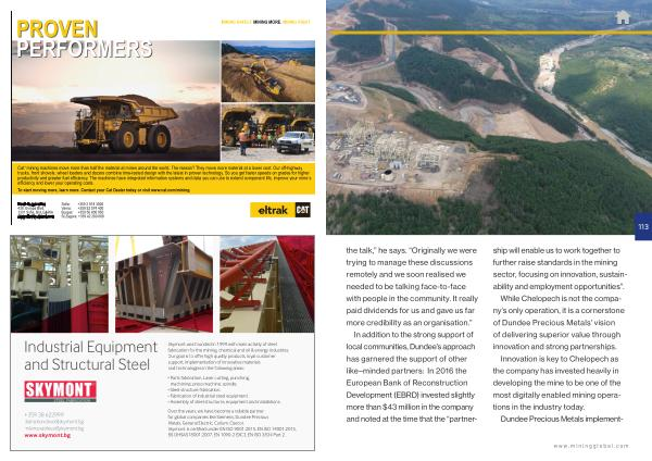 In addition to the strong support of local communities , Dundee ’ s approach has garnered the support of other like – minded partners : In 2016 the European Bank of Reconstruction Development ( EBRD ) invested slightly more than $ 43 million in the company and noted at the time that the “ partnership will enable us to work together to further raise standards in the mining sector , focusing on innovation , sustainability and employment opportunities ”.