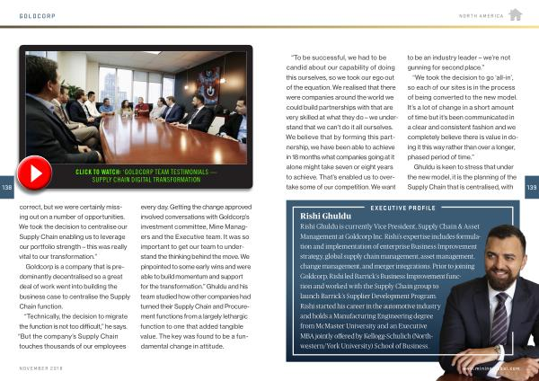 “ Technically , the decision to migrate the function is not too difficult ,” he says . “ But the company ’ s Supply Chain touches thousands of our employees every day . Getting the change approved involved conversations with Goldcorp ’ s investment committee , Mine Managers and the Executive team . It was so important to get our team to understand the thinking behind the move . We pinpointed to some early wins and were able to build momentum and support for the transformation .” Ghuldu and his team studied how other companies had turned their Supply Chain and Procurement functions from a largely lethargic function to one that added tangible value . The key was found to be a fundamental change in attitude .