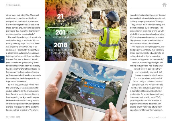 Despite the shifting paradigm , the mining industry still has a long way to go before it becomes truly technologically enabled . But through companies like Llama- Zoo , the paradigm shift is in full force . Lavigne believes that the company can and will become the number one solutions provider of a complete 3D operating picture of a mine site . As technology continues to evolve , so too will LlamaZOO , providing solutions that are able to capture even more data that can create a fully holistic picture from operation right through to investment .
