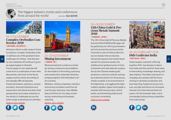 [ LONDON , UK ] Mining Investment London is a strategic mining conference and exhibition for the leaders of the mining , quarrying and construction materials industries , bringing together 200 attendees from 15 countries . Ministers , mining companies , investors and service providers travel from all over Europe , Americas , Asia , Middle East and Africa for two days of partnering , networking and business matching . click to view website NOVEMBER 2018