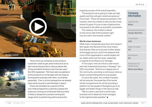 “ Every time you introduce a new product , customers need to get used to that and we ’ ve sent some trial parcels to various places like China and North America over the past year ,” the CEO explained . “ We have seen acceptance of the products on a trial basis and we hope to do long term business with them , on ilmenite especially . From a zircon perspective we already have some long term partnerships in place .” There will inevitably be a period of time now while prospective customers assess the products coming out of Grande Côte but there is likely to always be a product among the range which is performing well to ensure the