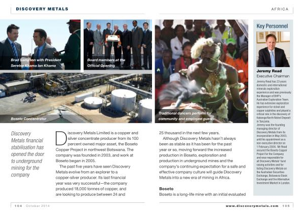 Although Discovery Metals hasn ’ t always been as stable as it has been for the past year or so , moving forward the increased production in Boseto , exploration and production in underground mines and the company ’ s continuing expectation for a safe and effective company culture will guide Discovery Metals into a new era of mining in Africa .