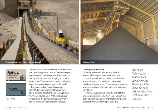 Underground Future Currently , Discovery Metals is out in the market with the goal to raise equity from current shareholders and a few potential new shareholders to proceed into underground development operations . The company wants to start exploration in the beginning of the calendar year 2015 .