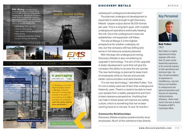 Community Relationships Discovery Metals employs predominantly local employees . Much of the workforce lives directly