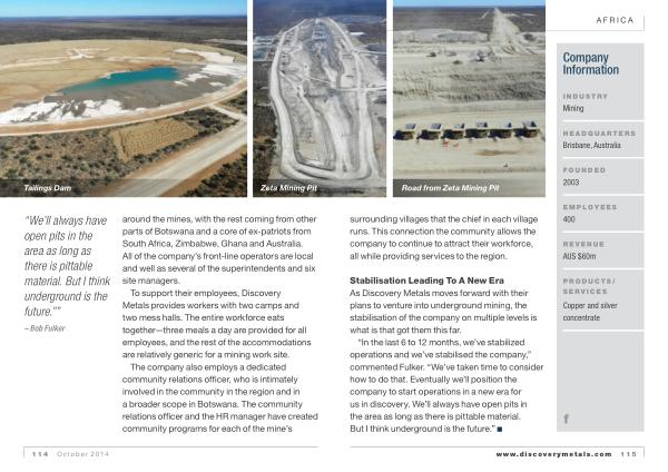 around the mines , with the rest coming from other parts of Botswana and a core of ex-patriots from South Africa , Zimbabwe , Ghana and Australia . All of the company ’ s front-line operators are local and well as several of the superintendents and six site managers .
