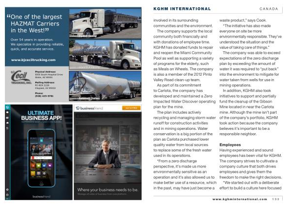 The company supports the local community both financially and with donations of employee time . KGHM has donated funds to repair and reopen the Miami Community Pool as well as supporting a variety of programs for the elderly , such as Meals on Wheels . The company is also a member of the 2012 Pinto Valley Road clean-up team .