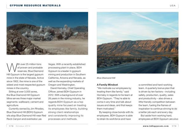 Vegas . With a recently established processing plant in place , BDH Gypsum is a leader in gypsum mining and production in Southern California , Arizona and Nevada , as well as the expanding markets of Oregon and Washington .