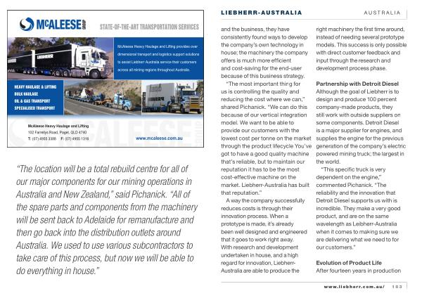 McAleese Heavy Haulage and Lifting provides over dimensional transport and logistics support solutions to assist Liebherr Australia service their customers across all mining regions throughout Australia .