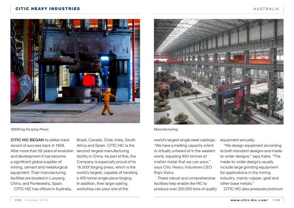 world ’ s largest single steel castings . “ We have a melting capacity which is virtually unheard of in the western world , equaling 900 tonnes of molten metal that we can pour ,” says Citic Heavy Industries CEO Rajiv Kalra .