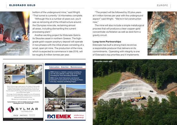 Another exciting project for Eldorado Gold is its Skouries asset in northern Greece . The highgrade gold-copper porphyry deposit will operate in two phases with the initial phase consisting of a small , open pit mine . The production of the mine , which is expected to commence in late 2016 , will be roughly 8 million tonnes per year .