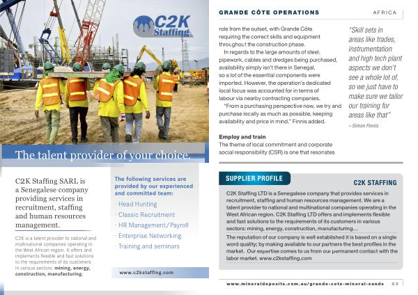 C2K is a talent provider to national and multinational companies operating in the West African region . It offers and implements flexible and fast solutions to the requirements of its customers in various sectors : mining , energy , construction , manufacturing .