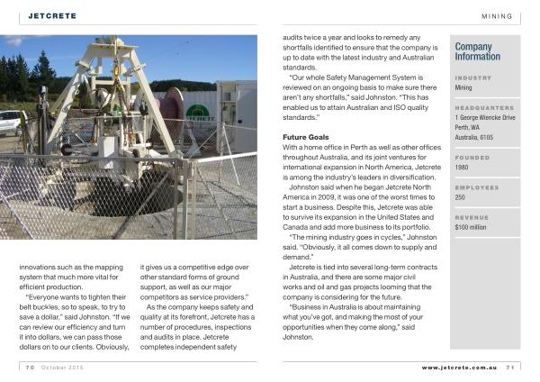 As the company keeps safety and quality at its forefront , Jetcrete has a number of procedures , inspections and audits in place . Jetcrete completes independent safety
