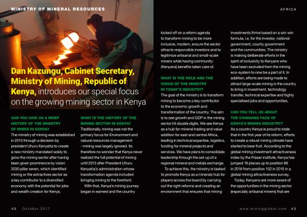 Dan Kazungu , Cabinet Secretary , Ministry of Mining , Republic of Kenya , introduces our special focus on the growing mining sector in Kenya
