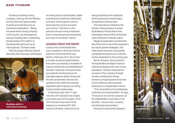 But for Schwarz , the success of the Kwale Mine and Base Titanium extends well beyond its core mining operations . He also measures the success of the company through its role in building the mining economy and giving back to its host communities by improving their livelihoods in a sustainable manner .