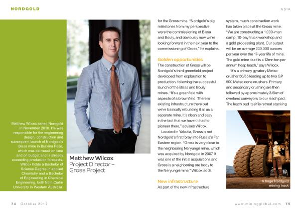 ASIA for the Gross mine . “ Nordgold ’ s big milestones from my perspective were the commissioning of Bissa and Bouly , and obviously now we ’ re looking forward in the next year to the commissioning of Gross ,” he explains .