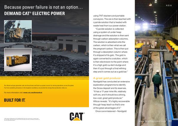 “ Cyanide solution is collected using a system of under heap drainage and the solution is then sent through carbon adsorption columns . The solution is adsorbed onto the carbon , which is then what we call the pregnant carbon . This is then put through a desorption column where it ’ s stripped of its gold . The gold is again converted to a solution , which is then electrowon to the point where it ’ s a high gold content sludge and then it ’ s put through a final refining step and it comes out as a gold bar .”