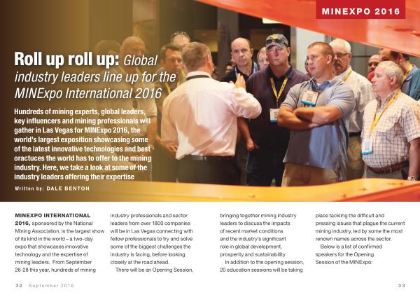 MINEXPO 2016 bringing together mining industry leaders to discuss the impacts of recent market conditions and the industry ’ s significant role in global development , prosperity and sustainability