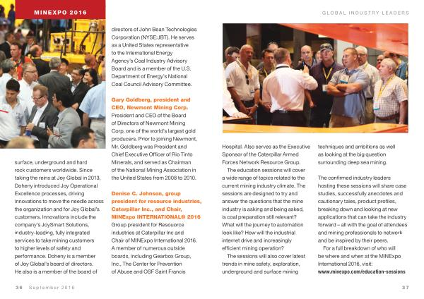 For a full breakdown of who will be where and when at the MINExpo International 2016 , visit : www . minexpo . com / education-sessions